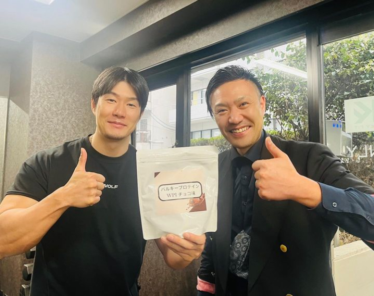 ブログ スーツ&プロテインお渡し in TOKYO バルキー渡辺さんのオリジナルプロテインが完成し久野さんにプレゼントしたいと道場にお邪魔させて頂きました😆東京来たら久野さんに会いに行くのが恒例になっている🤣絶対トレーニングの邪魔してる笑いつもお出迎えくださりありがとうございます 2024.04.11 ブログ